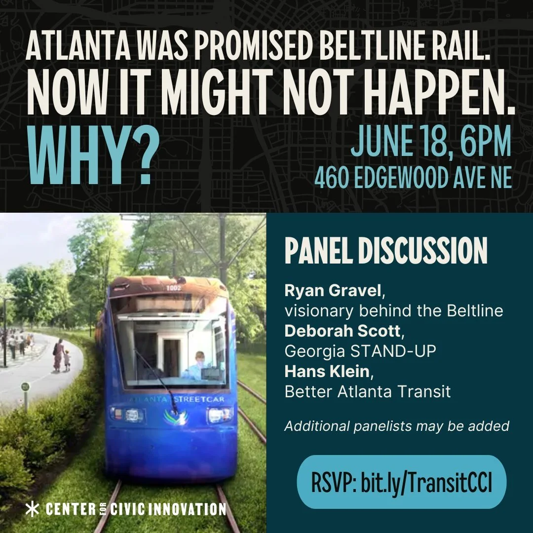 We're nearly nine years into the More MARTA half-penny sales tax, with more than $650 million raised, and so far, there's no transit expansion to show for it. But what is the future of transit in Atlanta? Join Beltline Rail Now Chair Matthew Rao and other panelists live on Atlanta News First Channel 46 for its Transit Town Hall. broadcast from Atlanta's Central Library 7-9 PM Tuesday, October 7th. Tickets are available here, or you can watch live on ANF!