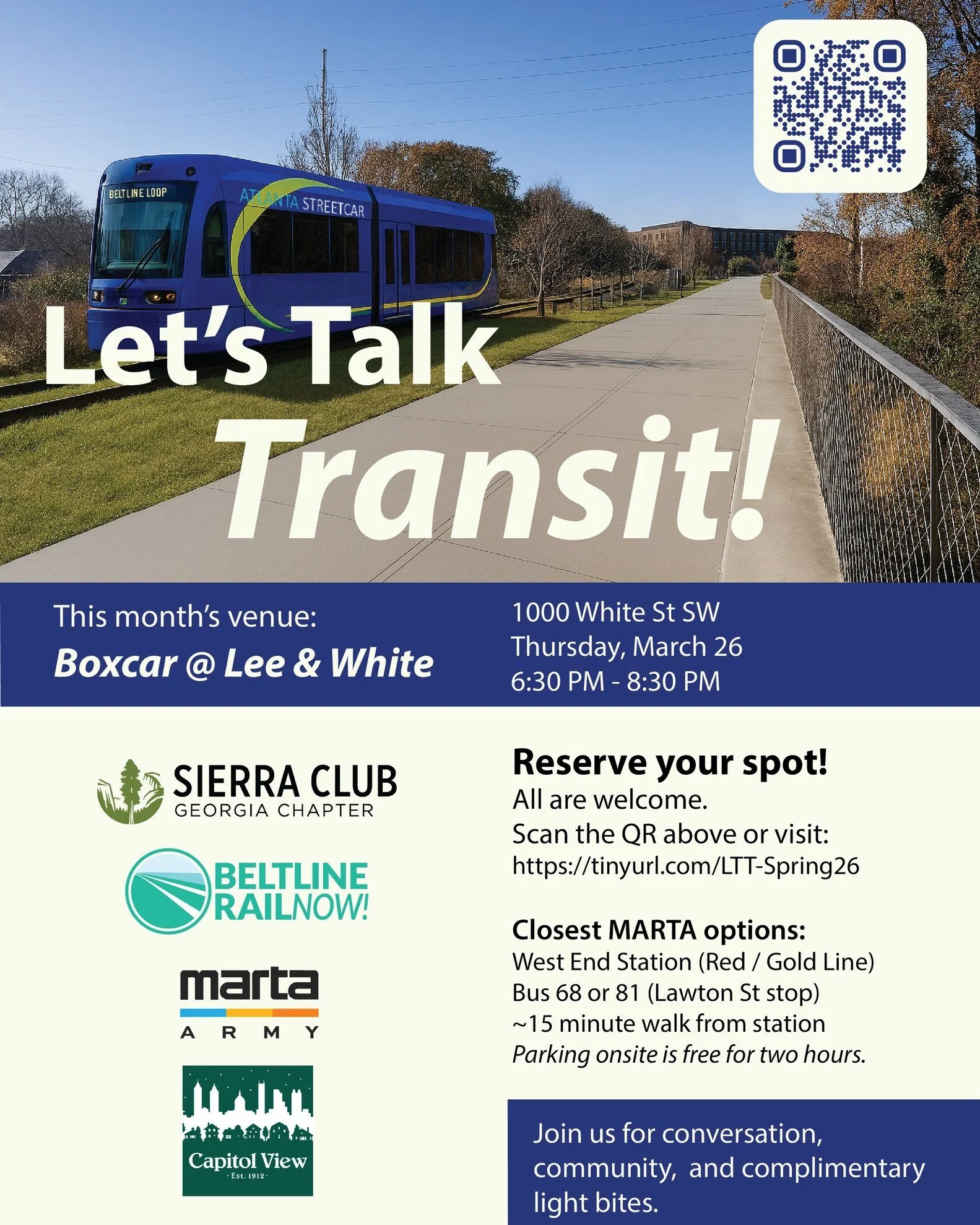 Want to talk with other transit fans, experts, and officials about what's next for transit in Atlanta? Let's Talk Transit is a safe, fun, and informal way to meet others and have a good time celebrating the things we have in common- our love of transit and the future of it in the ATL.